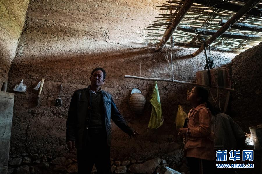 石元顺(左)带着孩子在村里查看旧居(3月15日摄)。新华社记者 江文耀 摄