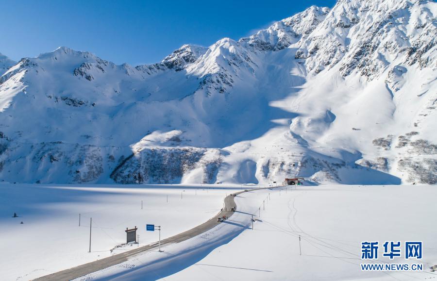 雪后的墨脱公路嘎隆拉隧道入口(2月8日摄,无人机照片)。新华社记者 孙非 摄