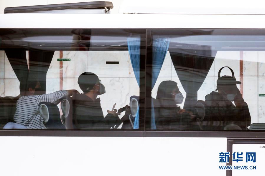 2月15日,从英国伦敦希斯罗机场抵达的旅客乘坐大巴车到达机场附近的隔离酒店。从2月15日开始,英国将要求来自“旅行禁令名单”国家和地区的旅客入境后在政府认可的酒店等住宿设施内隔离10天。新华社发(雷伊·唐摄)