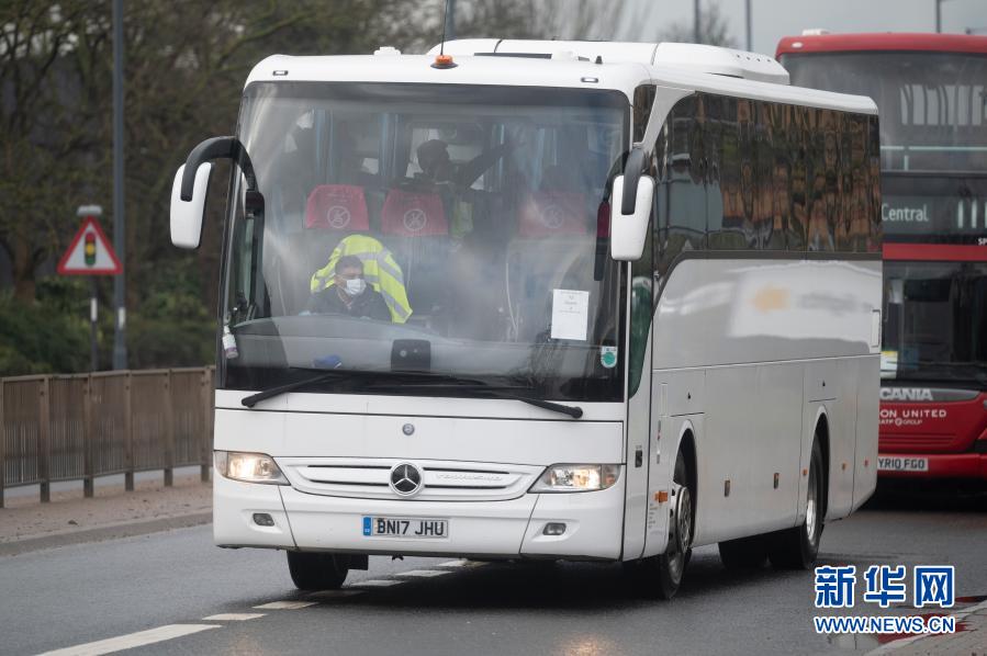 2月15日,从英国伦敦希斯罗机场抵达的旅客乘坐大巴车前往机场附近的隔离酒店。从2月15日开始,英国将要求来自“旅行禁令名单”国家和地区的旅客入境后在政府认可的酒店等住宿设施内隔离10天。新华社发(雷伊·唐摄)