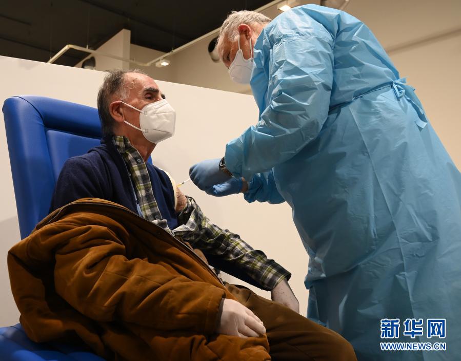 2月15日,医护人员在意大利罗马为一名老人接种新冠疫苗。