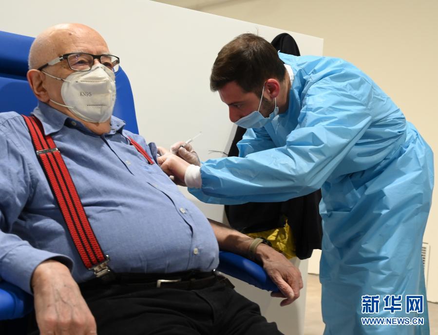 2月15日,医护人员在意大利罗马为一名老人接种新冠疫苗。