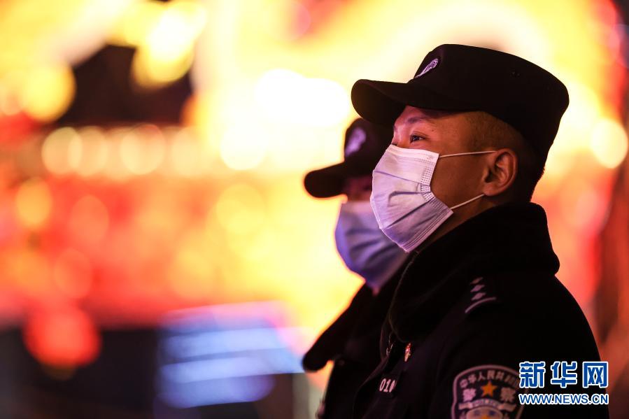2月15日,西宁市公安局城北公安分局小桥大街派出所的值班民警在街上执勤。新华社记者 吴刚 摄