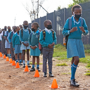 2月15日,在南非约翰内斯堡的一所小学,学生佩戴口罩上课。当日,南非的公立学校迎来开学日。基础教育部要求师生遵守新冠疫情期间的相关规定,并鼓励学生回校上课。新华社发(马修·马丁·布林克摄)