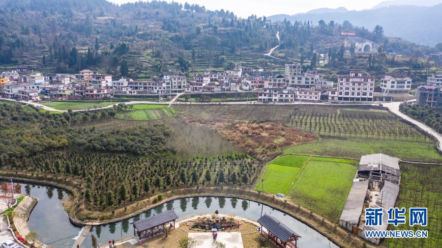 这是2月12日拍摄的贵州省龙里县冠山街道五新村(无人机照片)。新华社记者 陶亮 摄