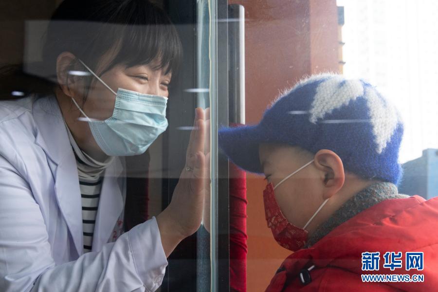 36岁的郑莹莹是哈尔滨市道外区人民医院的一名工作人员。2月1日至15日,她在道外区一处集中隔离点24小时值守,主要负责填写报表、出入人员转运联络等工作。这是2月11日除夕上午,郑莹莹6岁的儿子来到隔离点看望妈妈,还给她带来了一朵康乃馨。因疫情防控需要,郑莹莹只能隔着宾馆的玻璃门“摸摸”儿子。