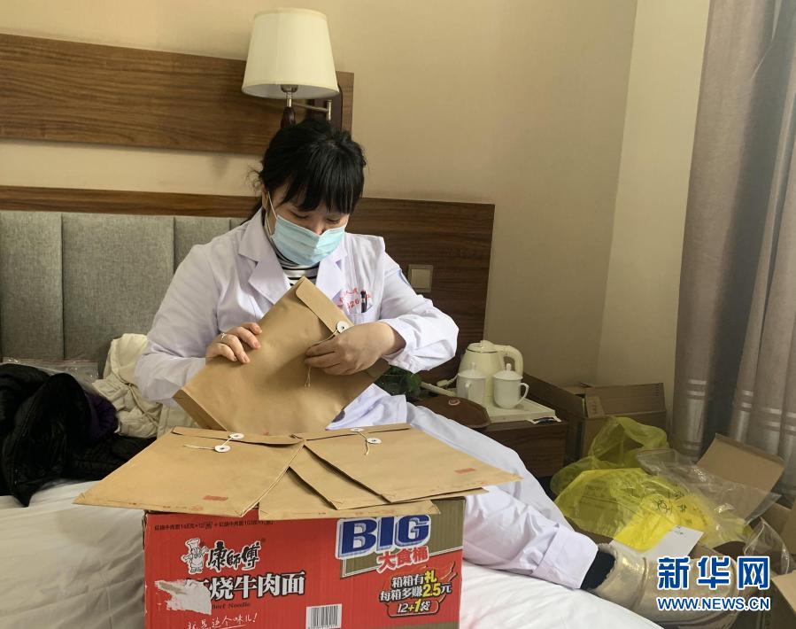 36岁的郑莹莹是哈尔滨市道外区人民医院的一名工作人员。2月1日至15日,她在道外区一处集中隔离点24小时值守,主要负责填写报表、出入人员转运联络等工作。这是2月11日除夕当天,郑莹莹在集中隔离点整理信息档案。
