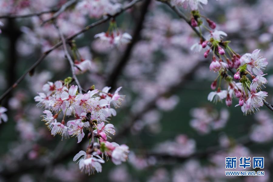 2月16日在建德市三都镇大唐村拍摄的野樱花。大唐村山野间连绵数十里的野樱花纷纷盛开,或粉或白,构成了春季美丽风景。