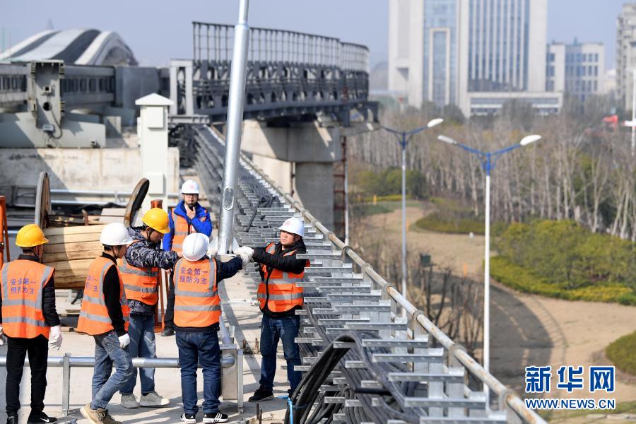 春节期间,在中铁四局电气化公司芜湖市轨道交通2号线项目建设现场,就地过年的工人们坚守岗位,加紧施工不停歇。