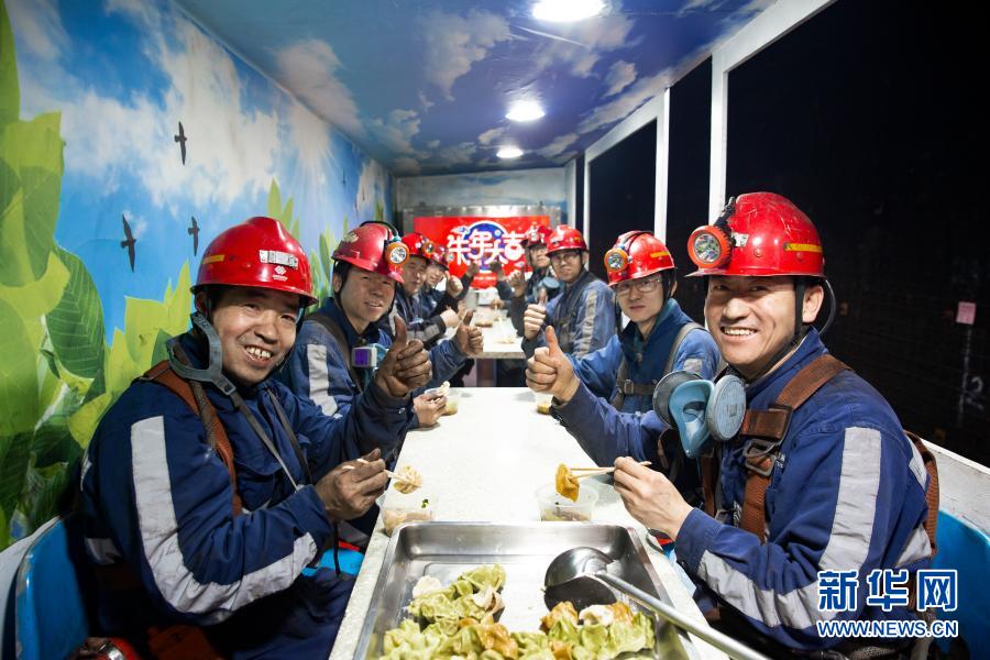 2月11日是农历大年三十,神东煤炭集团的就地过年矿工吃上了公司精心准备的年夜饭,一起欢度春节。新华社发(王超摄)