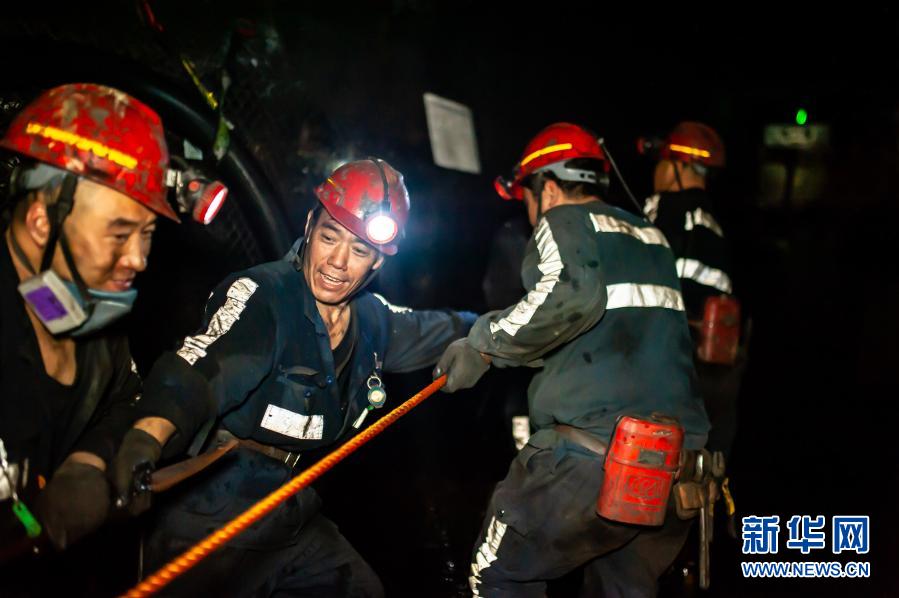 2月12日,神东煤炭集团布尔台煤矿综采二队检修班的工人们坚守在大年初一的工作岗位上。新华社发(王超摄)