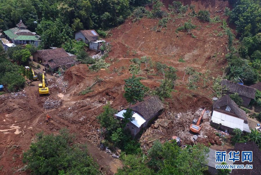 这是2月16日在印度尼西亚东爪哇省岸朱拍摄的山体滑坡现场(航拍照片)。