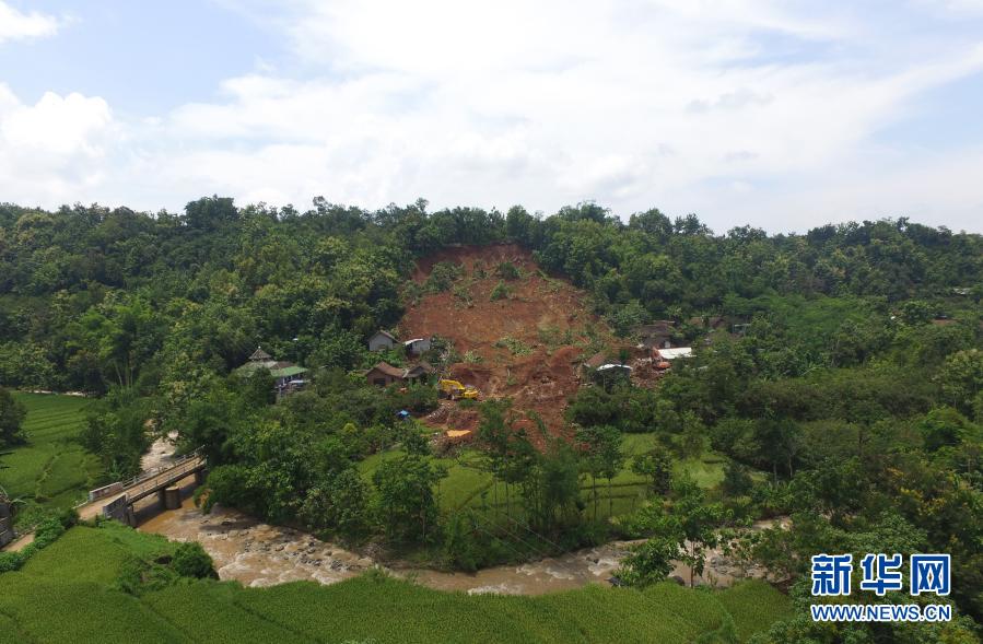 这是2月16日在印度尼西亚东爪哇省岸朱拍摄的山体滑坡现场(航拍照片)。