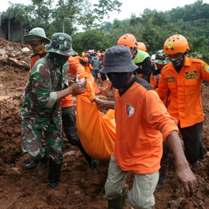 由2月14日的暴雨引发的山体滑坡在印度尼西亚东爪哇省已造成至少9人死亡。