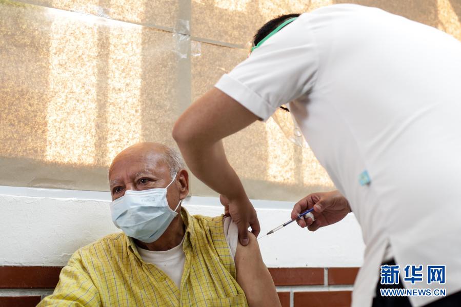 2月15日,一名老人在墨西哥首都墨西哥城的一处接种点接种新冠疫苗。