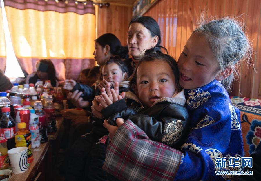 在红原县阿木乡卡口村,亲友欢聚在向巴家(2月15日摄)。新华社记者 江宏景 摄