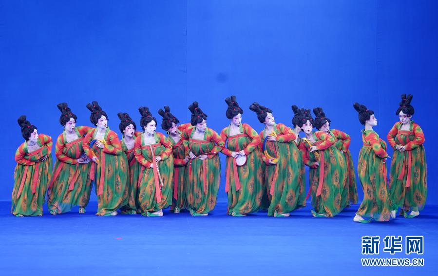 这是河南省春晚节目《唐宫夜宴》录制时的画面(2月1日摄)。新华社发