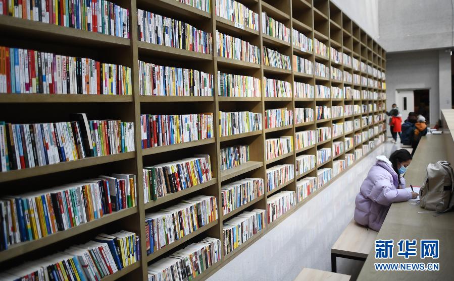 2月17日,一名学生(前)在西宁市几何空间全民阅读中心内做笔记。
