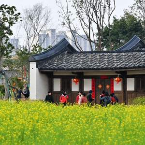 2月17日,游客在梁厝特色历史文化街区油菜“花海”里游玩。春节假期,位于福建省福州市仓山区城门镇的梁厝特色历史文化街区的古厝建筑和油菜“花海”吸引许多游客和市民前来游玩打卡。新华社记者 魏培全 摄