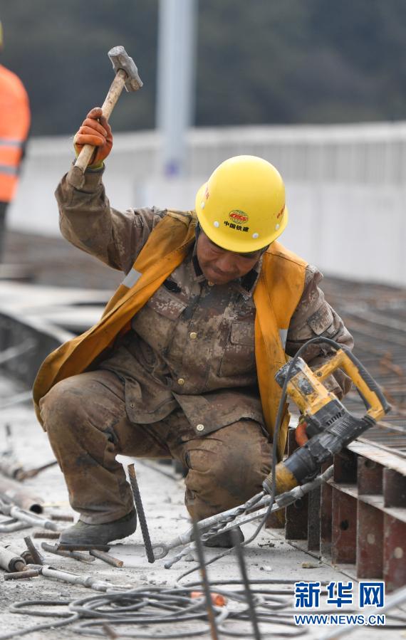 春节期间,5500余名参与建设我国首条民营控股高铁——杭绍台铁路的员工坚守岗位就地过年,工人们利用晴好天气奋战在工地上,稳步推进工程进度。
