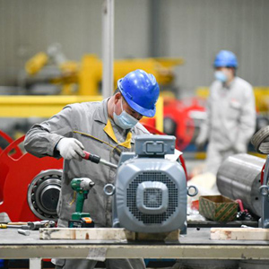 在中汽(天津)汽车装备有限公司车间,工人在进行零件集成作业(2月14日摄)。新华社发(孙凡越摄)