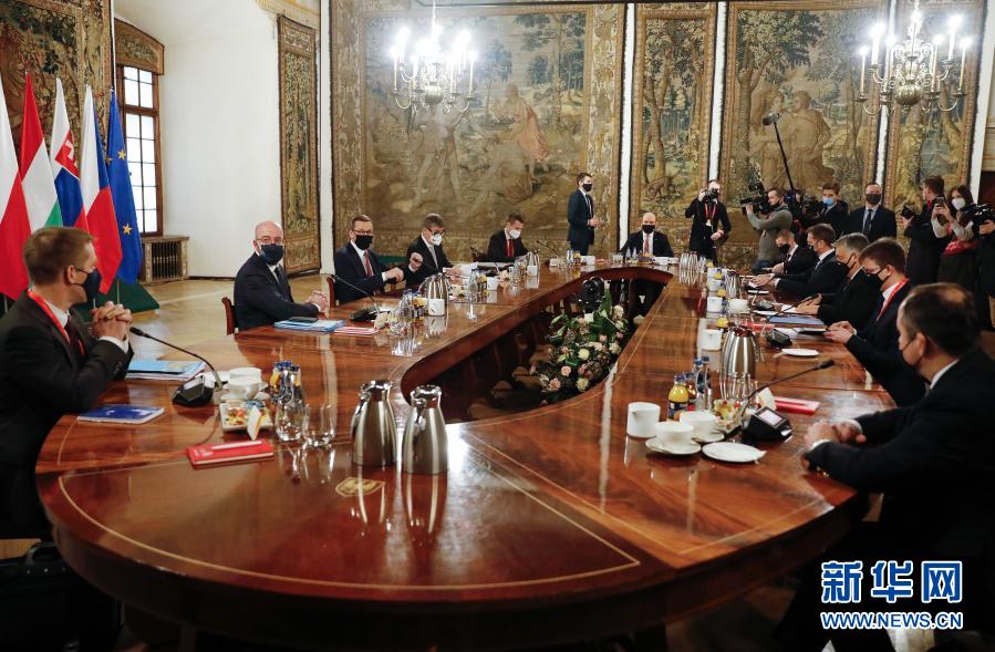 这是2月17日在波兰南部城市克拉科夫拍摄的维谢格拉德集团峰会现场。新华社发(欧盟供图)