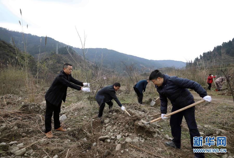 2月18日,人们在贵州省铜仁市江口县双江街道城郊村瓦寨组闵孝河流域参加义务植树。
