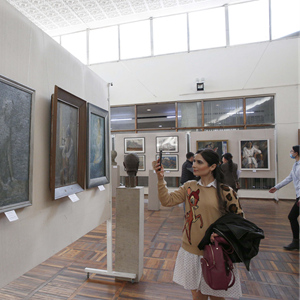 当日,吉尔吉斯斯坦首都比什凯克国家美术馆举行“三位大师·三个视角”绘画雕塑展。展览吸引了众多市民前来参观,将持续一周时间。
