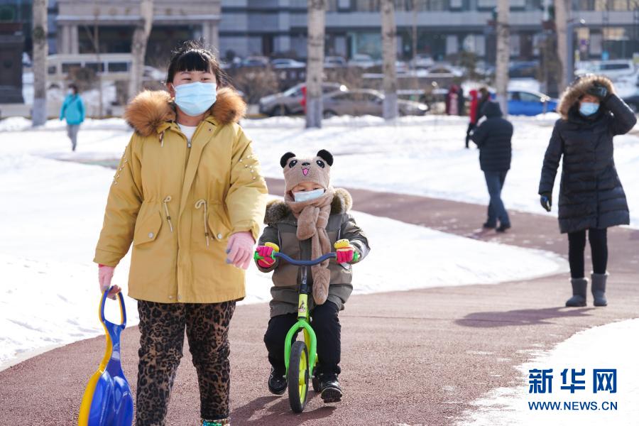 2月18日,人们在哈尔滨湘江公园游玩。新华社记者 王松 摄