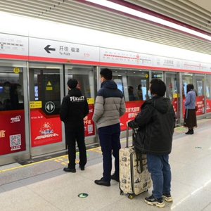 2月19日,乘客在石家庄地铁新百广场站内乘坐电梯。新华社记者 牟宇 摄