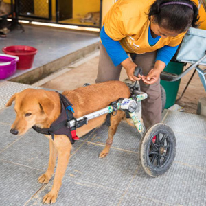 “流浪狗救助者”收容所位于泰国春武里府汕素镇。2017年,瑞典人迈克尔与当地政府签署协议,接管原属政府管辖的流浪狗收容所,并在这一基础上进行扩建和改良,将这个原本不大的流浪狗收容所建成现在面积超过5000平方米的大型收容中心,并分为隔离区、诊所区和收容区等的七个区域。收容所目前共有600余条狗。工作人员每天都会带着流浪狗外出散步,其中20余条残疾狗坐上为它们特制的“轮椅”外出。