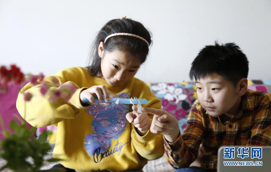 2月19日,河北省邢台市襄都区新华南路小学学生通过云端跟随老师体验摩擦起电小实验。