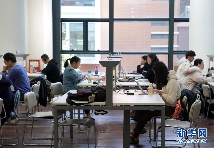 2月19日,在上海交通大学闵行校区图书馆内,学生们在自修。