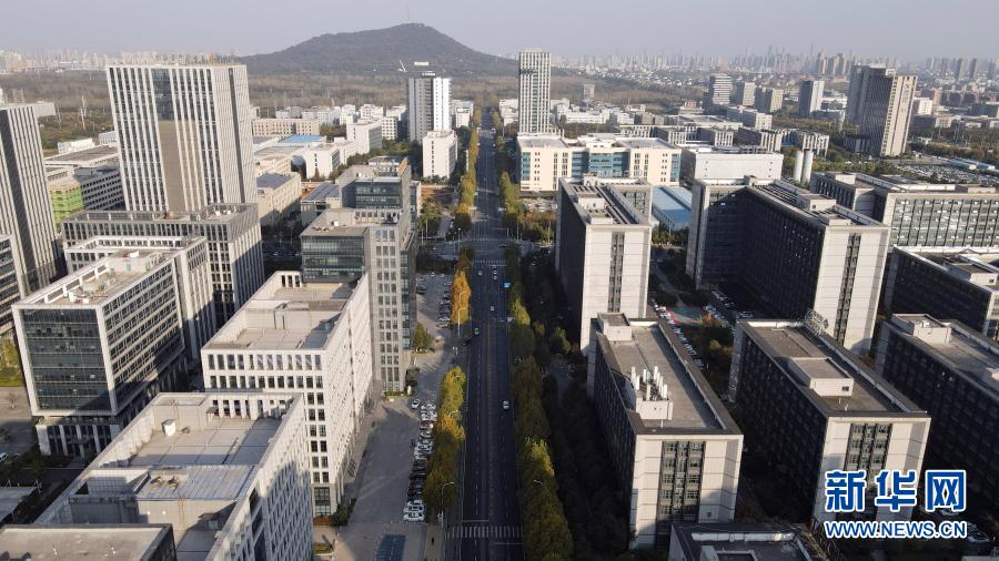 这是2020年11月6日拍摄的位于安徽省合肥市的“量子大道”及周边建筑(无人机照片)。新华社记者 周牧 摄