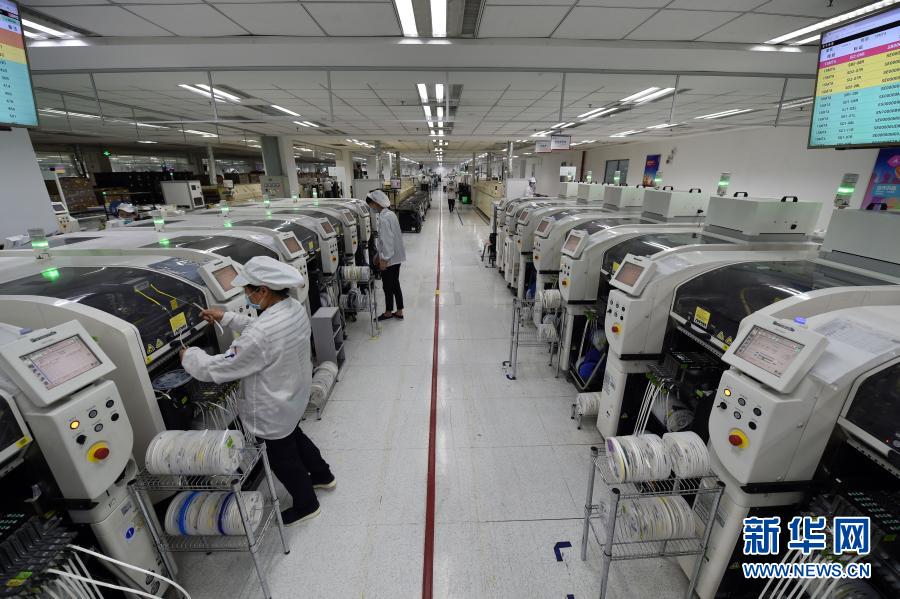 工人在位于安徽合肥的联宝(合肥)电子科技有限公司生产车间内忙碌(2020年3月5日摄)。新华社记者 周牧 摄