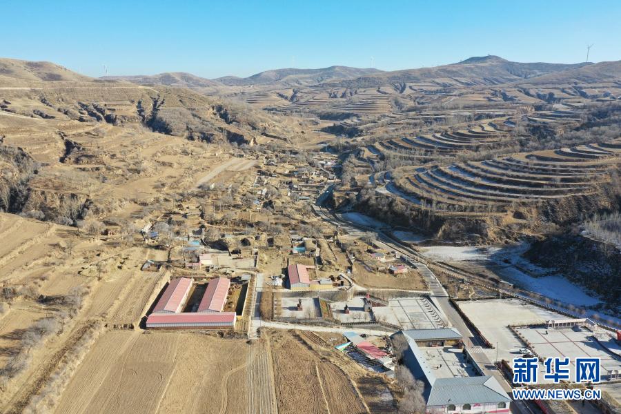 这是1月18日拍摄的内蒙古自治区清水河县老牛坡村(无人机照片)。新华社记者 李志鹏 摄