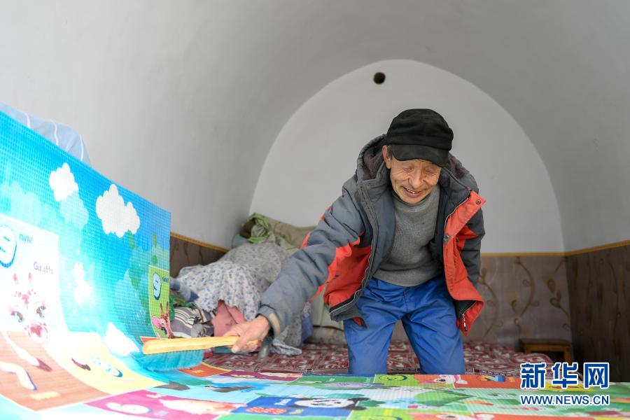 1月18日,内蒙古自治区清水河县老牛坡村村民陈二仁在打扫接待游客用的窑洞。新华社记者 贝赫 摄