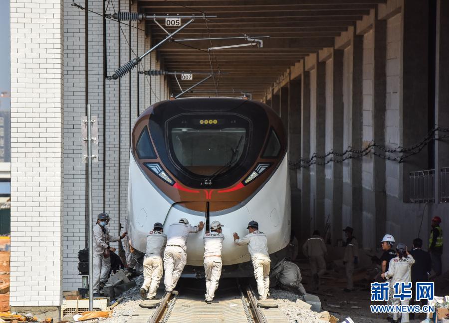 2月20日,施工人员将广州地铁18/22号线电客车推到陇枕停车场指定位置。