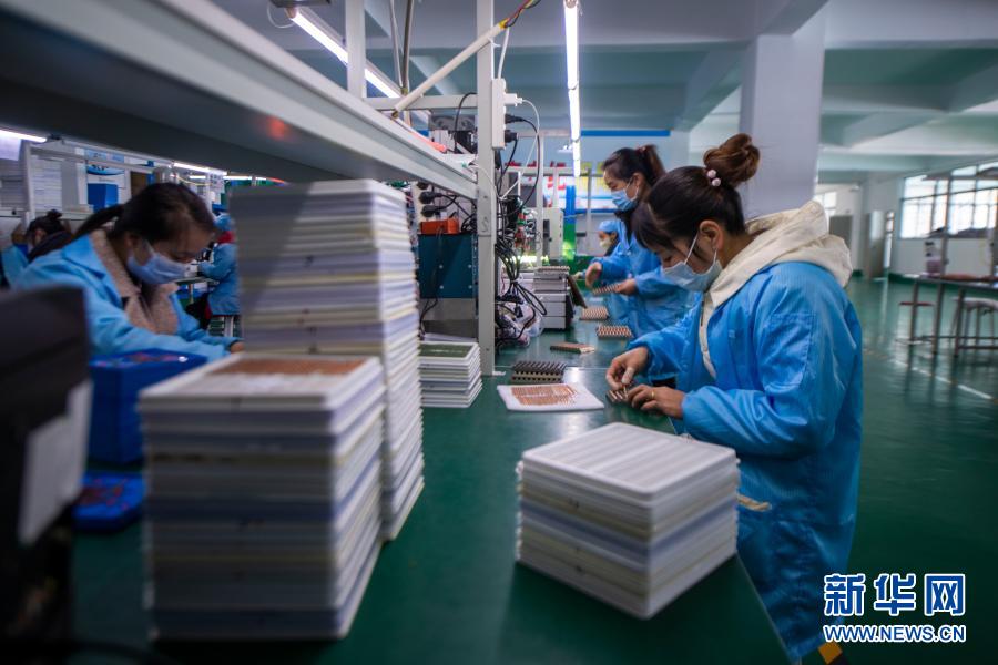 搬迁群众在会泽新城扶贫车间上班(2021年1月14日摄)。新华社记者江文耀摄