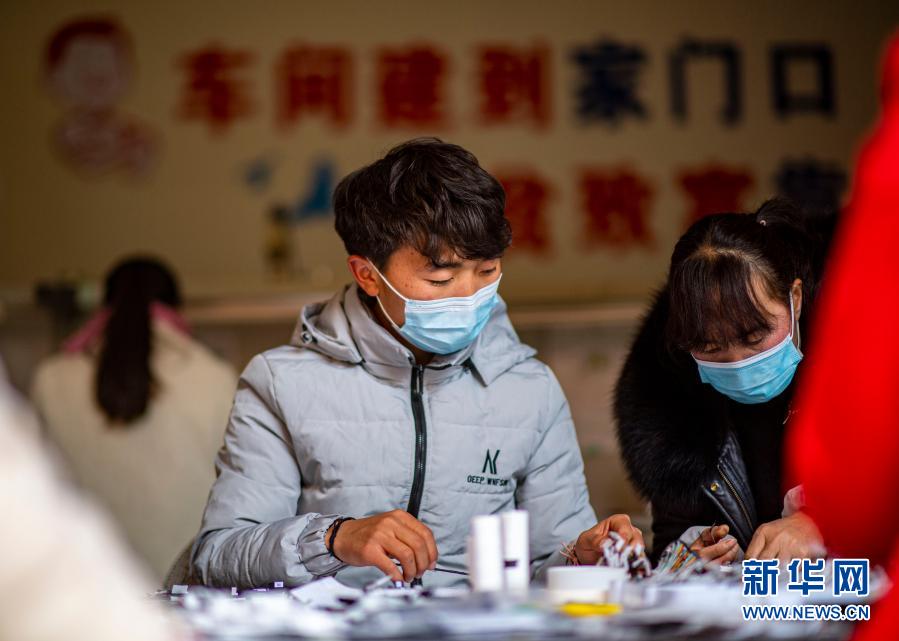 搬迁群众在会泽新城扶贫车间上班(2021年1月14日摄)。新华社记者江文耀摄