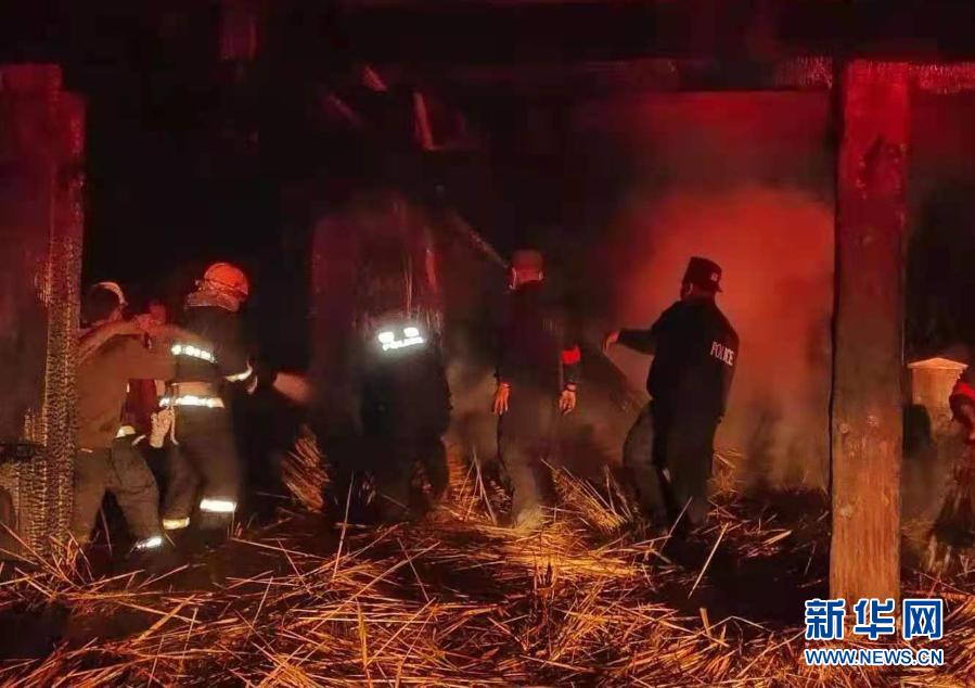 2月14日,消防人员在云南翁丁老寨火灾现场扑救。新华社发