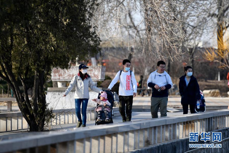2月20日,人们在天津市水上公园内散步。新华社记者 赵子硕 摄