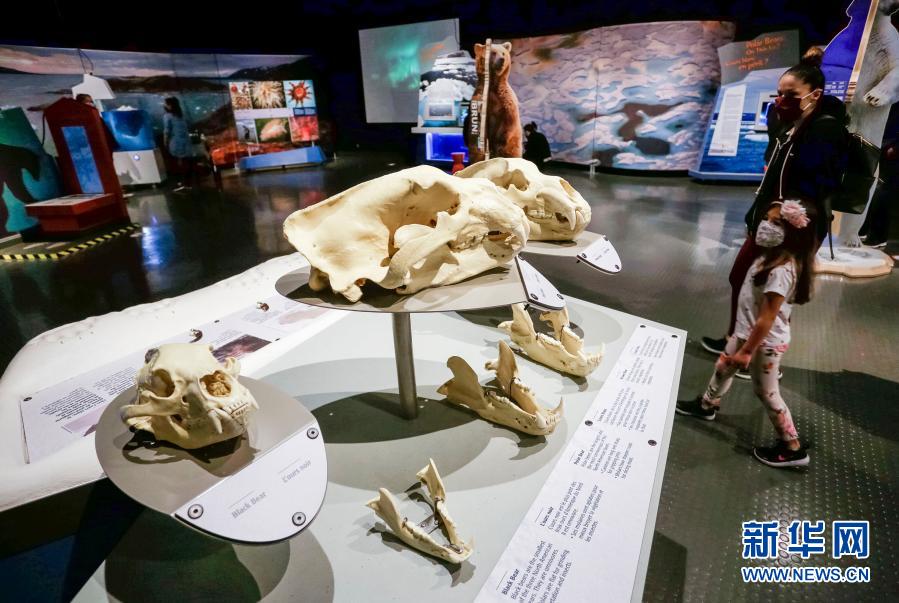 2月20日,人们在加拿大温哥华科学馆举办的“北极之声”专题展上观看北极动物头骨。新华社发(梁森摄)