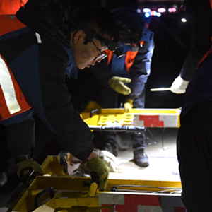 2月21日,工人通过轨检小车进行轨道检查任务。新华社记者 张曼怡 摄