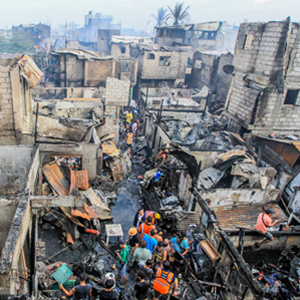 2月21日,居民在菲律宾马尼拉通多区的火灾现场寻找个人物品。新华社发(乌马利 摄)