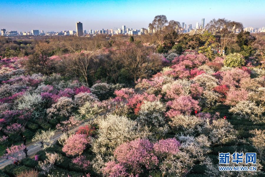 2月21日,从梅花山上空眺望南京主城(无人机照片)。新华社记者 杨磊 摄