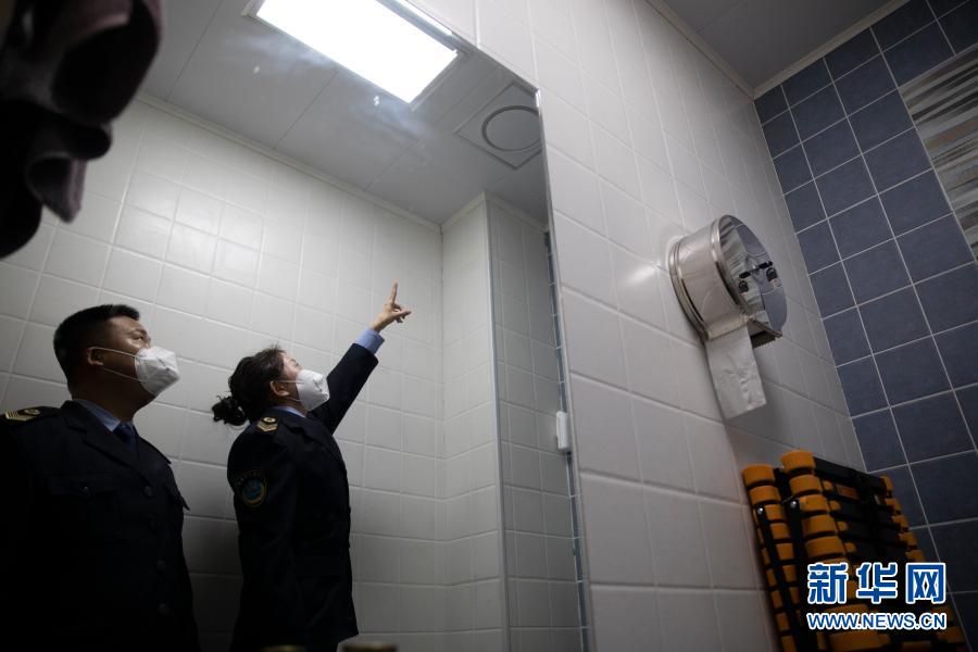 2月19日,在哈尔滨新区一家小型宾馆内,松北区卫健局的工作人员进行现场查审。新华社发(张涛 摄)