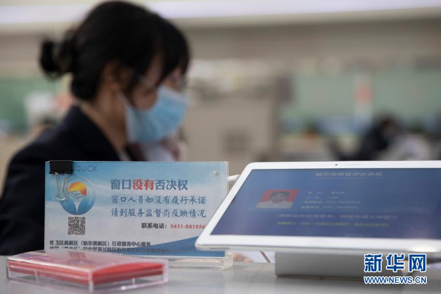 2月19日,工作人员在哈尔滨新区管理委员会行政审批局行政服务中心内进行电话服务。新华社发(张涛 摄)