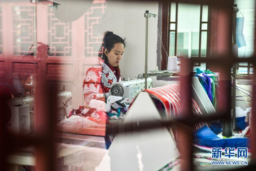 2月20日,在化屋村麻窝寨易地扶贫搬迁集中安置点,苗族绣娘杨文丽在扶贫车间制作苗族服饰。2019年底,杨文丽和丈夫尤华忠创办了蜡染刺绣扶贫车间,带动村里30余名村民到车间实现就业增收。她的新年心愿是希望把扶贫车间做大做好,带动周边更多的乡亲一起致富。