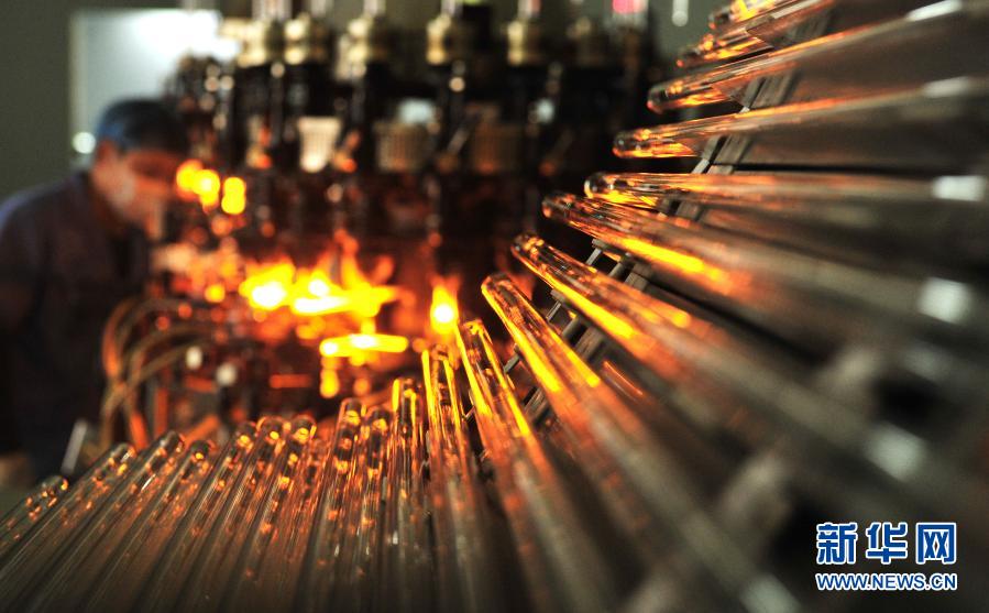 2月6日,工人在位于沧县纸房头工业园区的沧州四星玻璃股份有限公司药用中性硼硅玻璃管制瓶车间工作。近日,河北省沧州市药用中性硼硅玻璃管制瓶等物资生产企业加足马力生产,助力疫情防控。